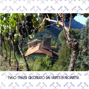Il Pinot Nero di Maso Thaler nasce in vigneti situati tra i 500 e i 700 metri di altitudine, dove le pendenze sono marcate e i vigneti terrazzati obbligano al lavoro manuale.